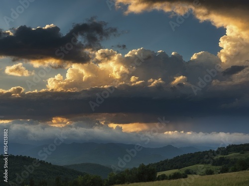 Obraz premium Dramatic Sunset Over Rolling Hills and Mountains