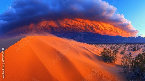 Fototapeta premium Dramatic sunset over sand dunes with a stormy sky
