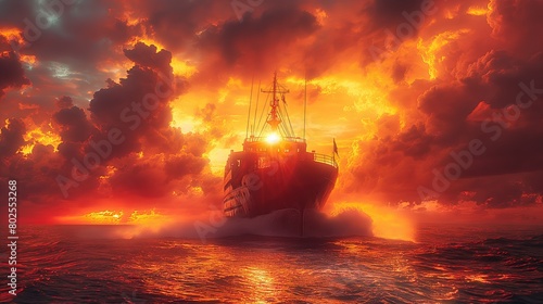 Obraz premium Dramatic Sunset Sail Through Fiery Skies