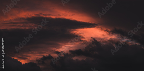 Fototapeta premium Dramatic sunset sky background. Vivid orange clouds.