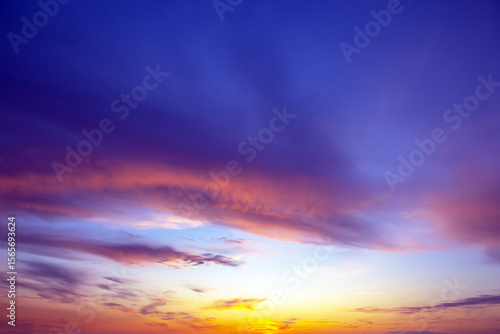 Fototapeta premium Dramatic sunset sky featuring golden, fiery clouds against a deepening blue...