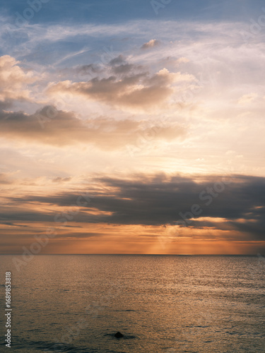Obraz premium Dramatic Sunset Sky Over Calm Ocean Horizon