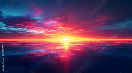 © Phichaphat, Obraz premium Dramatic Sunset Sky Over Ocean with Colorful Clouds