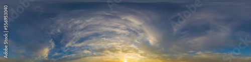 Naklejka premium Dramatic sunset sky panorama with Cumulus clouds. Seamless hdr 360 pano in...