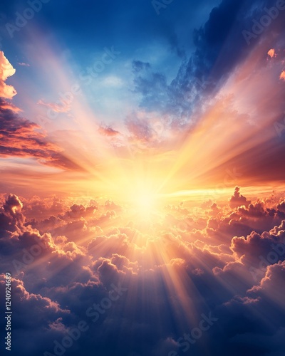 © MaxStock, Fototapeta premium dramatic sunset sky with clouds and rays of light