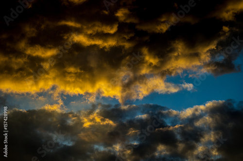 Obraz premium Dramatic sunset sky with colorful clouds after thunderstorm