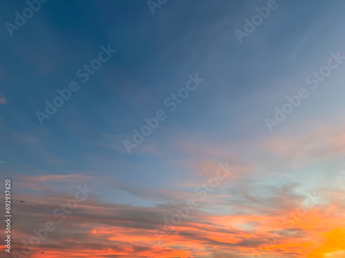 Fototapeta premium Dramatic sunset sky with colorful clouds background concept. Evening sunset....