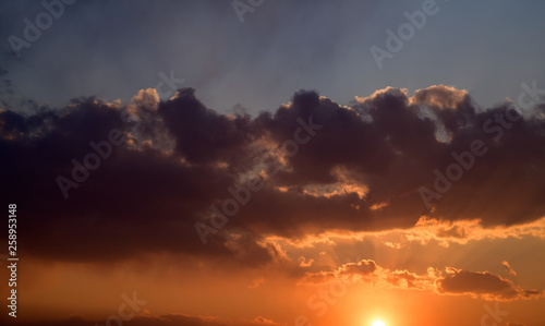 Fototapeta premium Dramatic sunset sky with orange clouds.