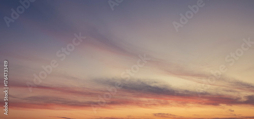 © Rangsarit, Fototapeta premium Dramatic sunset sky with orange colored clouds.