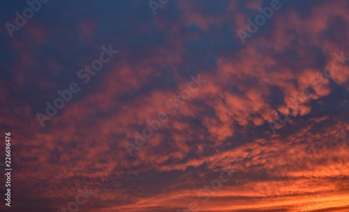 Fototapeta premium Dramatic sunset sky with orange colored clouds.