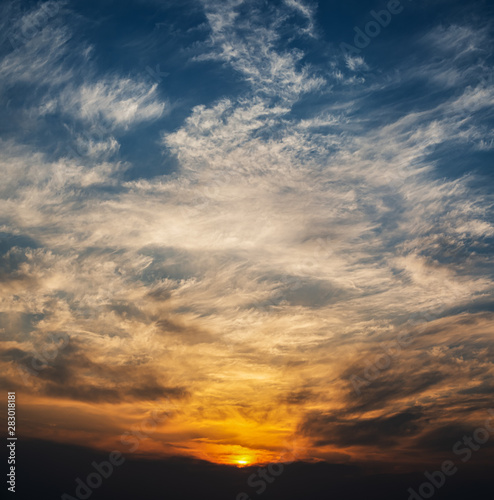 Fototapeta premium Dramatic sunset sky with orange colored clouds.