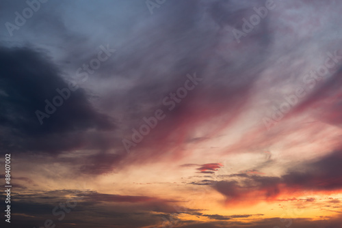 Fototapeta premium Dramatic sunset sky with orange colored clouds.