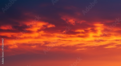 Obraz premium Dramatic sunset sky with vibrant orange and purple hues at dusk