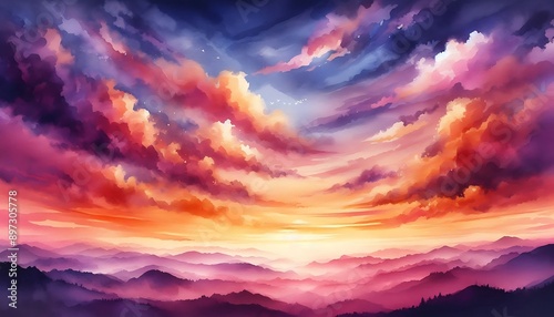 © Brisa, Obraz premium Dramatic Sunset with Colorful Clouds
