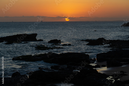 Fototapeta premium Dramatic sunset with colorful clouds. Late afternoon, twilight.