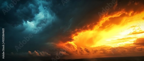 © Aodsy, Fototapeta premium Dramatic Sunset with Stormy Clouds Above Horizon