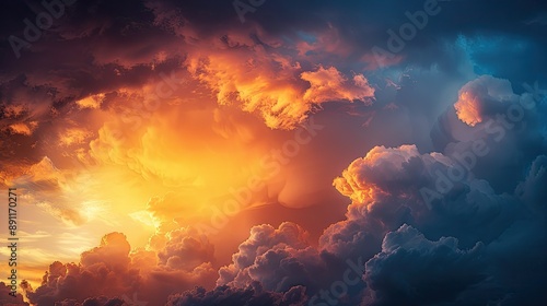 Fototapeta premium Dramatic sunset with vibrant and moody sky clouds