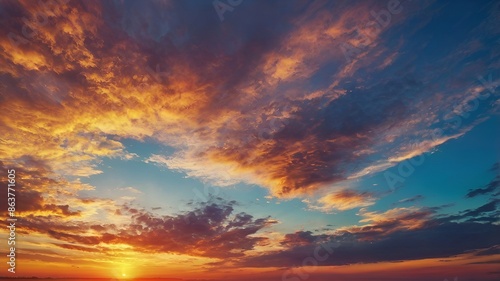 © Mr.daniyal, Obraz premium "Dramatic Sunset with Vibrant Clouds Illuminating the Evening Sky"