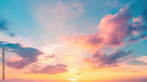 © Nisit, Obraz premium Dramatic sunset with vibrant hues of orange and pink reflecting on clouds