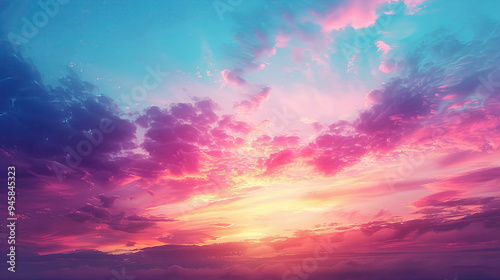 © Kantiztiae, Obraz premium Dramatic Sunset with Vibrant Pink and Purple Clouds background