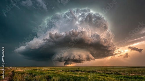 Obraz premium Dramatic Supercell thunderstorm over a field