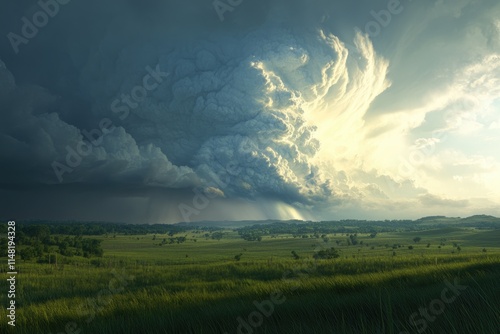 © Amal, Fototapeta premium Dramatic supercell thunderstorms create tornado in Nebraska.