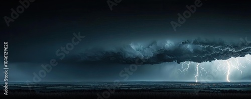 © Jiraporn, Fototapeta premium Dramatic thunderstorm with dark clouds and lightning over the ocean.