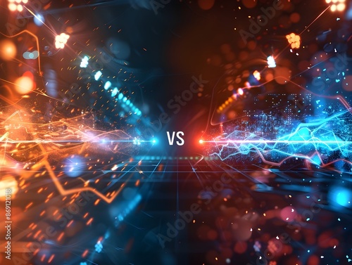 Fototapeta premium Dramatic Versus Screen Banner with Spotlights and Intense Energy