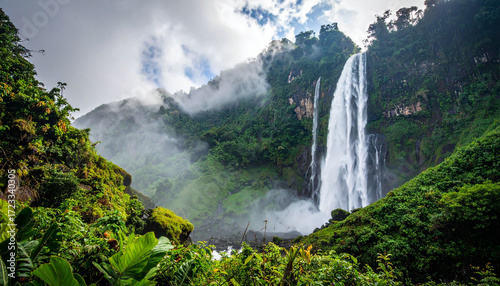 © Rino, Fototapeta premium Dramatic Waterfall in Lush Tropical Rainforest