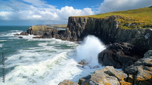© BerkahStock, Fototapeta premium Dramatic Waves Crashing Against Rugged Cliffs