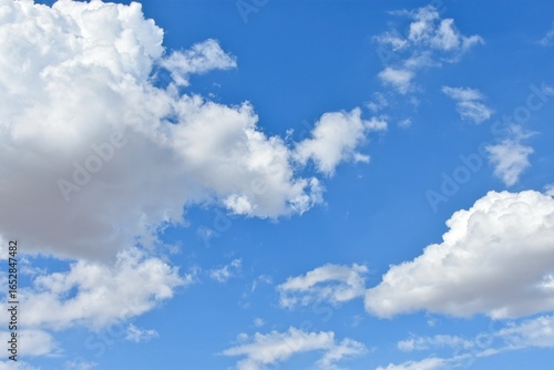 Fototapeta premium Dramatic white cumulus clouds floating in a blue sky for background design,...
