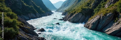 © Sayfar, Obraz premium Dramatic Whitewater Rapids Surge Through Rocky Canyon, Untamed Natures Power