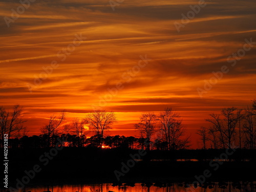 © jesuis terun_vision, Fototapeta premium dramatic winter sunset over Chesapeake Bay