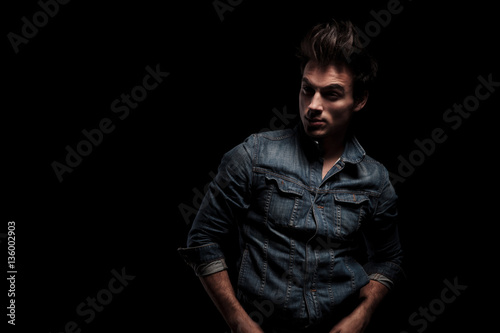 Obraz premium dramatic young man standing with hands in pockets