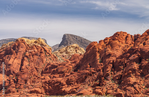Obraz premium Dramatica panorama of the red rocks of Red Rock Canyon in Nevada seen from the Visitor center near Las Vegas