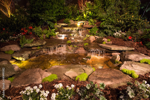 © kmm7553, Fototapeta premium Dramatically lit waterfall at night