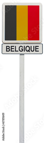 © Unclesam, Fototapeta premium drapeau belge sur panneau de signalisation