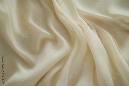 © Yusnira, Obraz premium Draped cream silk fabric texture, closeup, studio