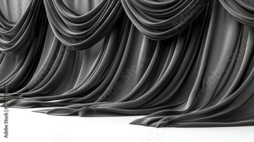 © Dece Std, Fototapeta premium Draped Dark Gray Curtains Isolated on White Background