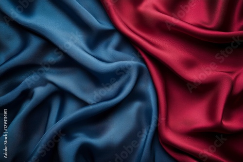 Fototapeta premium Draped fabric in rich blue and deep red tones showcases textures and color contrasts perfect for design projects