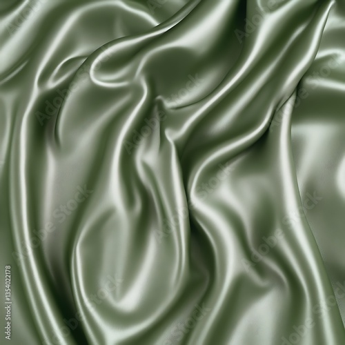 © Fcdua, Obraz premium Draped olive green satin fabric texture