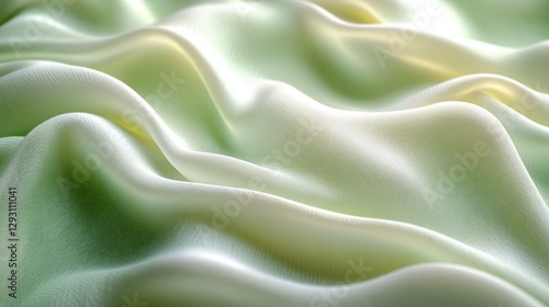 © AFFANYUDA, Obraz premium Draped pastel green silk fabric texture, studio shot, background blur, textile design