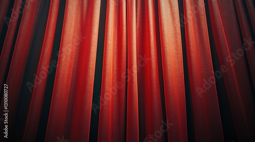 © Oleg, Fototapeta premium Draped Red Curtain: Texture and Light Play on Fabric