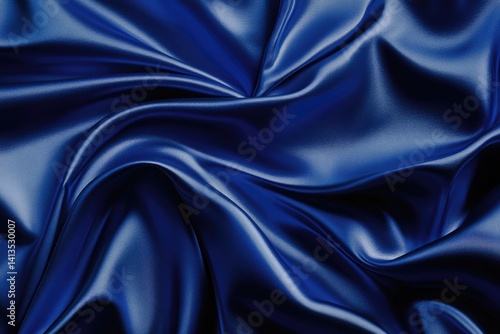 Obraz premium Draped royal blue satin fabric with elegant folds and luxurious texture.