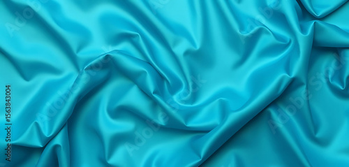 Obraz premium Draped turquoise satin fabric texture background, elegant smooth silk textile backdrop, luxurious soft material, flowing waves, abstract design element, rich color, close-up view.