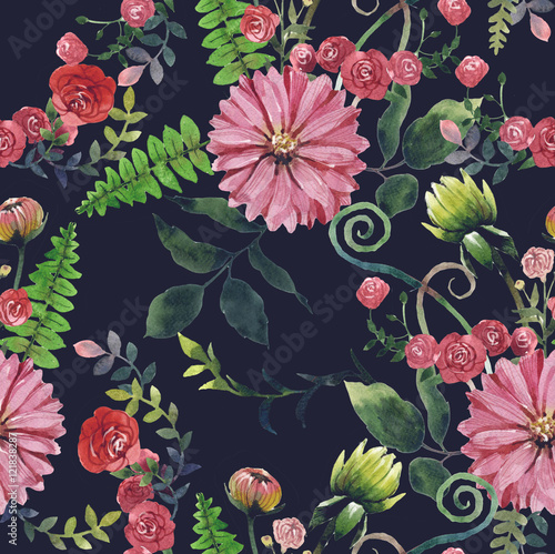 Fototapeta premium Draw a pattern flowers watercolour black background.