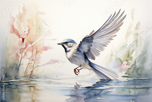 © 건우 이, Obraz premium Draw an image of a bird in watercolor. Generative AI