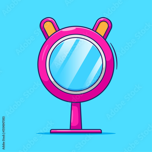 © Camhiu, Obraz premium Draw cute pink mirror with handle illustration cartoon vector isolated. Hand mirror illustration with flat style design