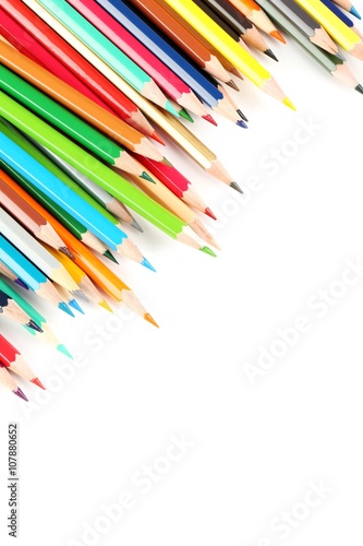 Fototapeta premium Drawing colourful pencils on a white background, close up
