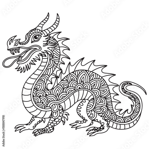 © firoz, Obraz premium Drawing dragon for coloring book.